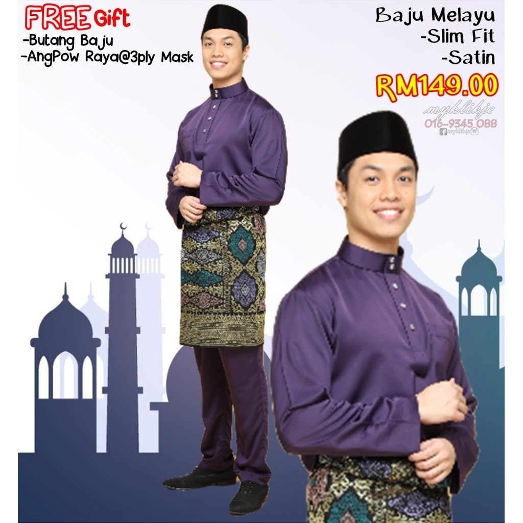 Baju Melayu Moden Slim Fit Indigo Free Gift Raya Shopee Malaysia